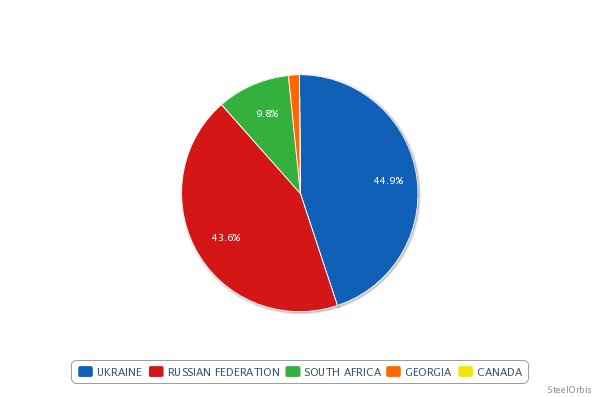 Turkey's pig iron imports from Ukraine in January this year amounted to 26,900 metric tons, down 77 compared to the previous month, while imports from Russia, Turkey's second largest pig iron source, amounted to 26,152 mt in January, up 4.8 percent month on month. Turkey's largest pig iron sources in the month in question can be seen in the graph below: