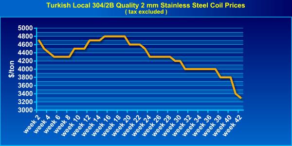 The decreasing trend in stainless steel prices is continuing and prices have now slipped below the levels seen at the beginning of 2007. This downturn process seen globally will require some time to exhaust itself. The common problem of all real sectors worldwide is the lack of the necessary confidence required to convert existing money into investments.