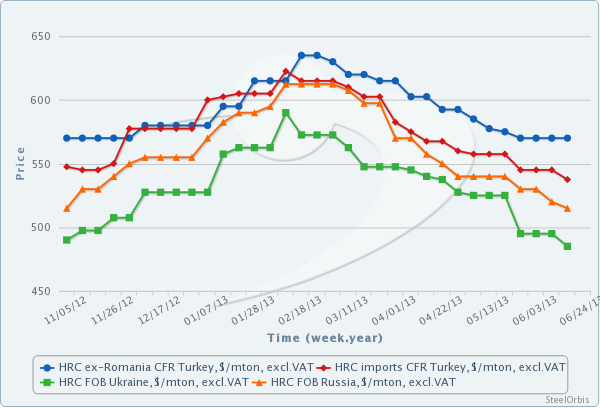 In the meantime, the most recent flat steel import offers to Turkey have been as follows: Russian hot rolled coil (HRC) and cold rolled coil (CRC) offers to Turkey were at $520-550/mt CFR and $640-660/mt CFR respectively, while Romanian HRC offers were standing at $560-570/mt CFR and CRC offers were at $665-670/mt CFR. Finally, the latest Ukrainian HRC offers to Turkey had been given at $500-510/mt CFR, while offers for CRC were standing at $600-605/mt CFR.