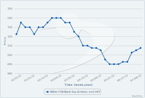 CIS mills' billet export offers have gained strength thanks to the upward movements of scrap prices. Accordingly, ex-CIS billet offers have indicated an increase of $5/mt on the lower end since last week to $505-510/mt FOB. Purchases of August rolling CISbillet in the foreign markets, particularly in the Middle East-North Africa and Black Sea regions, have continued to be concluded, while demand for offers of this material has remained on the strong side.