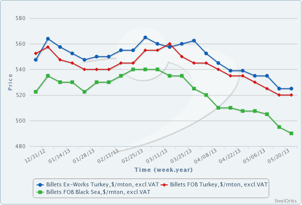 On the other hand, ex-CIS billet offers for Turkey have maintained their gradual downtrend. This week, billet offers from the CIS to Turkey are heard at levels of $500-510/mt CFR, following some transactions concluded at $510-512/mt CFR last week. Expectations for a further price softening have prevented buyers from rushing to conclude purchases.