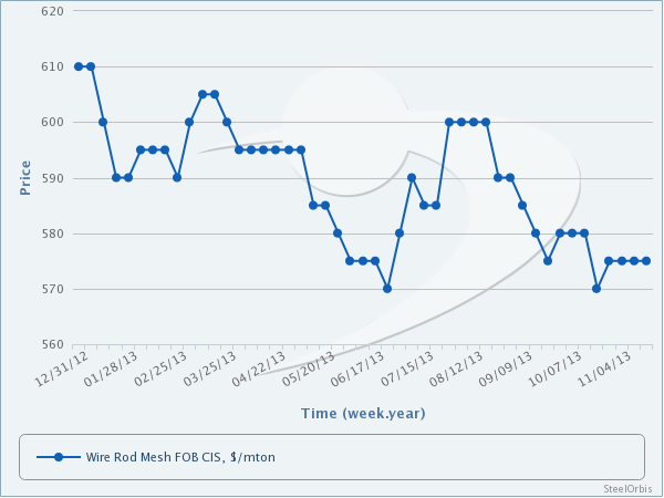 SteelOrbis has been informed by market sources that mesh quality wire rod export offers from the CIS have remained unchanged since last week and are still standing at $575-580/mt FOB Black Sea ports. Meanwhile, ex-CIS wire rod offers to North Africa are at $575-580/mt FOB, while offers from the CIS to Turkey are standing in the range of $585-590/mt CFR.