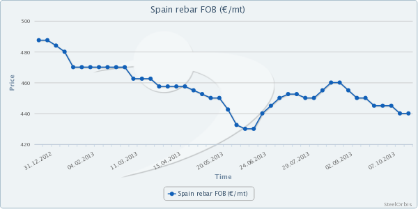 SteelOrbis has learned from market sources that rebar prices in the local Spanish market have remained unchanged since last week at €465-470/mt ($628-634/mt) delivered to customer.