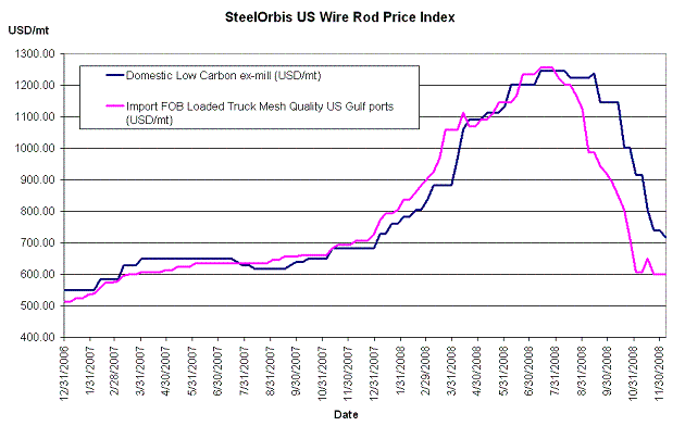The mills are hopeful, however, that their order books may start to fill up again early next year, especially if the scrap price increases continue. Buyers want to be sure that the prices have bottomed out. Rising scrap prices may reinforce the sentiment that wire rod prices are close to the bottom. But with no current improvement in demand in sight, the pricing trend for import wire rod remains slightly down for the time being.