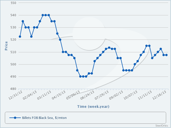 According to market sources, CIS mills' billet export offers for their January outputs are still ranging at $505-510/mt FOB, indicating no changes since last week, though buyers can insist on prices at $505/mt FOB and below levels due to high availability. Meanwhile, the New Year holiday in the CIS, which will start in the coming week and will end on January 13, until then buyers are reported to have remained reluctant to conclude new transactions. However, even though the purchasing activity has slowed down lately, CIS mills are not willing to cut their prices in this period as long as scrap prices remain strong. In the meantime, higher availability of steel billet in the market exerts downward pressure on prices, increasing the possibility of declines in steel billet prices in the period after the holiday.